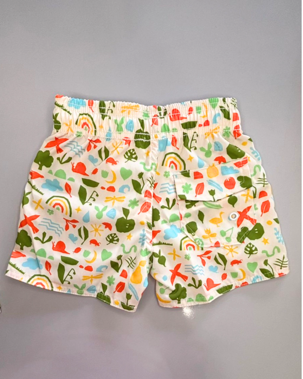 Possui elástico na cintura com ajuste interno, que garante segurança e conforto durante todo o uso, além de bolso traseiro funcional, que dá um toque moderno e prático ao modelo. A estampa geométrica é atual e divertida, trazendo cor e personalidade para o lookinho do seu filho.