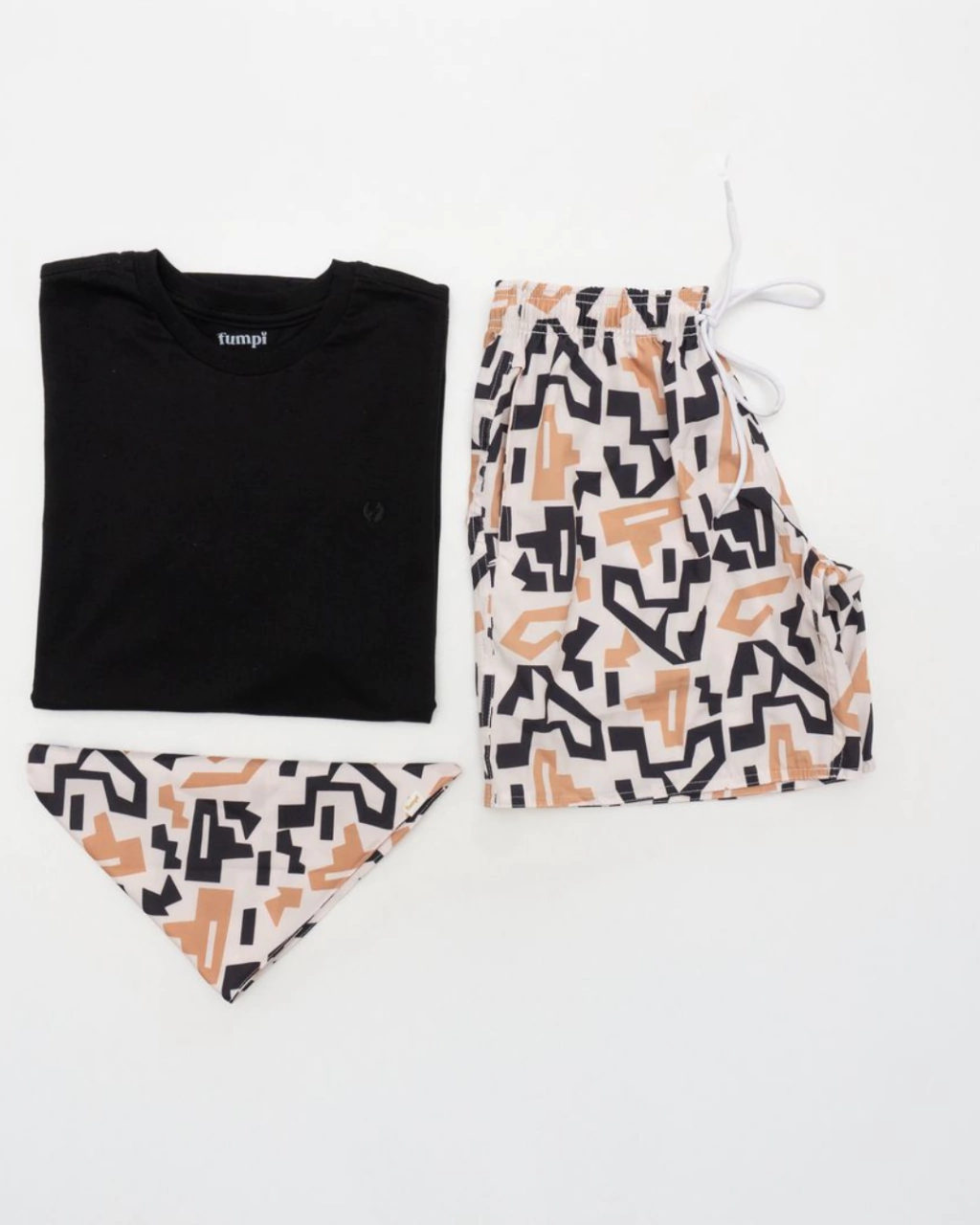 Estampa geométrica nas cores preto, bege e caramelo, uma opção estilosa e atemporal que combina com diversas ocasiões.