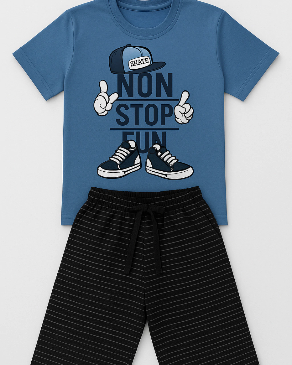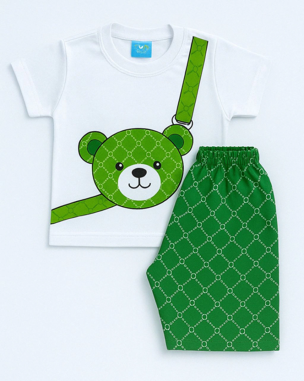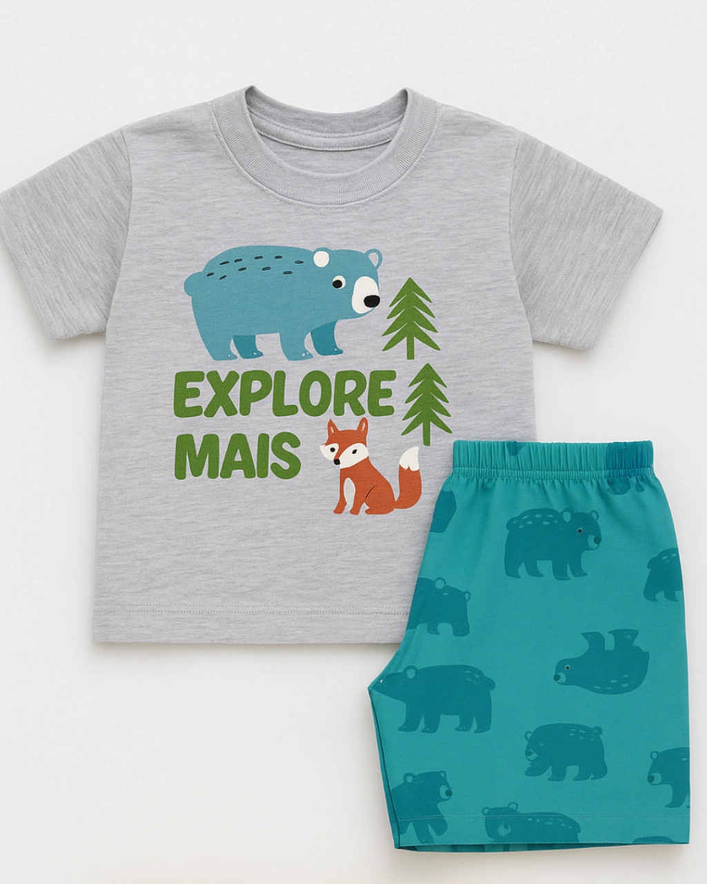 Já a bermuda é confeccionada em tecido tactel, conhecido por sua leveza, resistência e secagem rápida — ideal para os dias quentes, passeios ao ar livre, idas à escola ou momentos de diversão. Com cós ajustável, o conjunto proporciona o encaixe perfeito e muito mais conforto ao vestir.