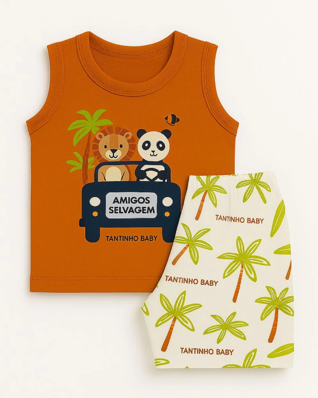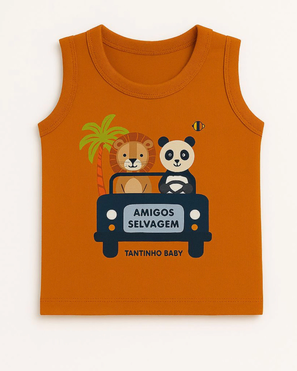 O Look Happy Boy está disponível em várias combinações de estampas, cores e modelos, tanto com regata quanto com camisa básica. Cada peça foi pensada para acompanhar os pequenos com muito estilo e versatilidade. Fácil de combinar, ele se adapta a diferentes ocasiões e é uma escolha certeira para quem busca beleza, qualidade e um precinho que cabe no bolso.